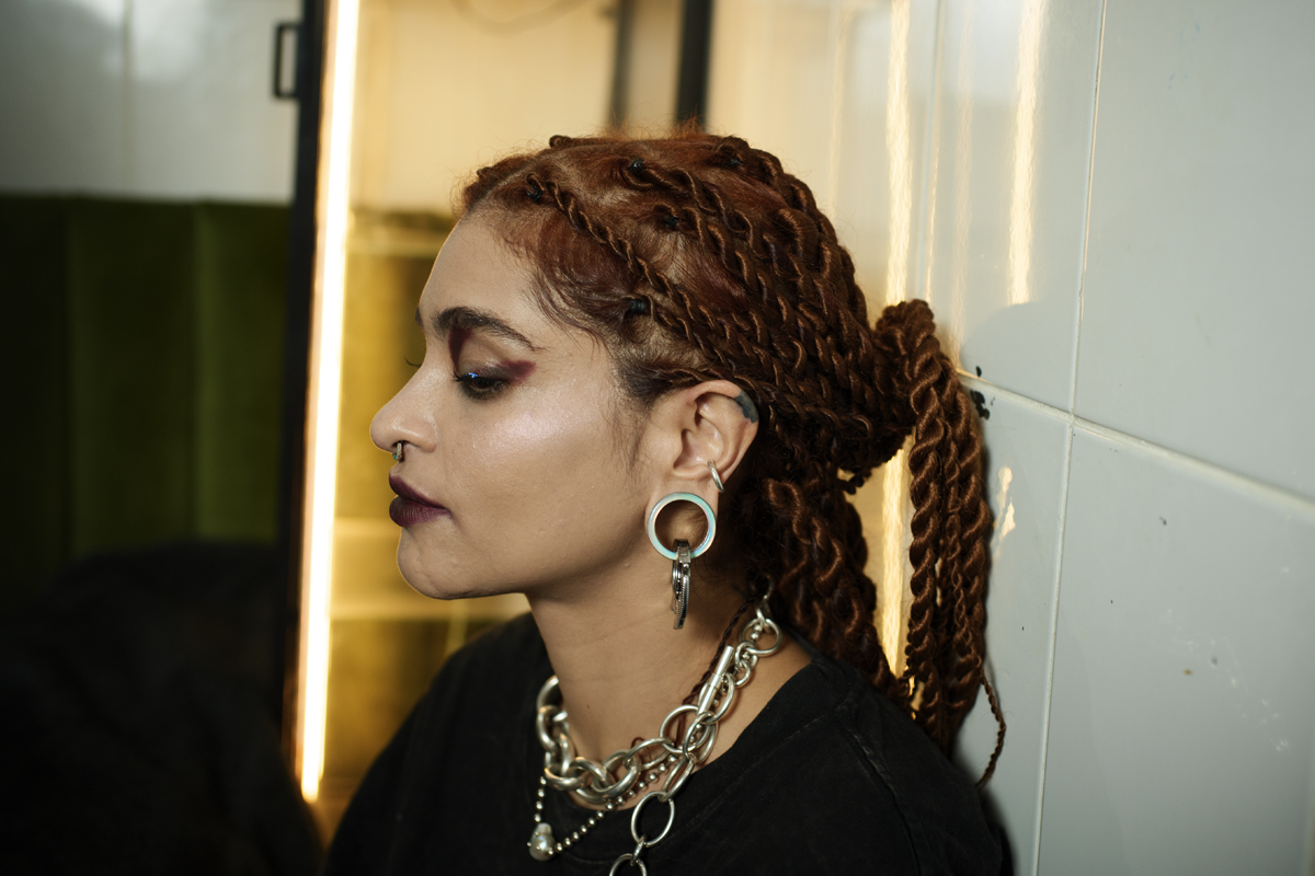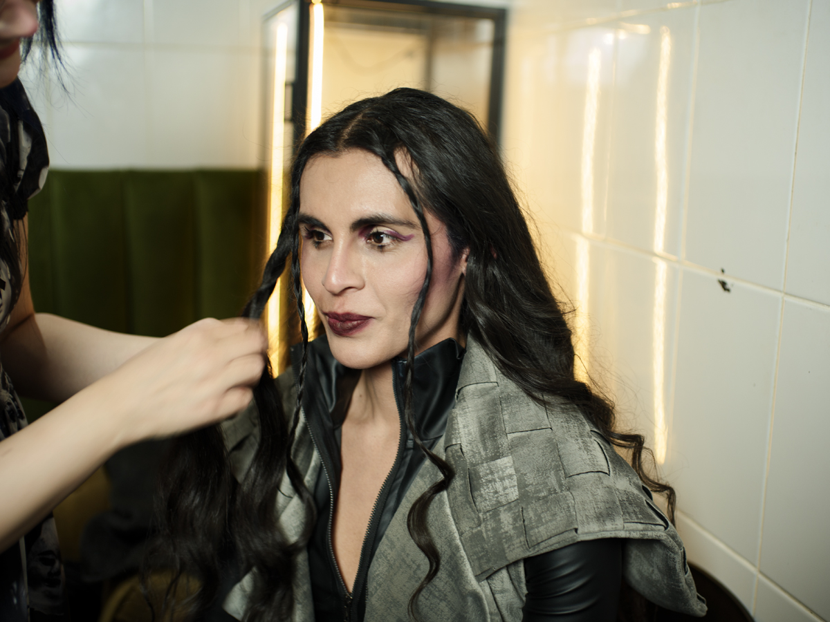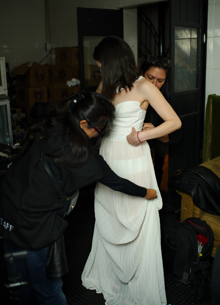 La noche giró en torno al trabajo de Aurora Niño de Rivera, cuya propuesta se presentó a través de un formato híbrido: pasarela íntima, conversación abierta y pop up. Atelier Night formó parte de un ciclo de tres noches consecutivas, siendo esta la segunda, en la que Aurora compartió sus piezas y su proceso creativo. En las otras dos fechas, el espacio fue tomado por las propuestas de Jester y Jesús Parra, ampliando el diálogo alrededor de distintas miradas y aproximaciones dentro de la moda independiente. Las piezas no solo se mostraron; se explicaron, se contextualizaron y se compartieron desde su origen conceptual hasta su materialidad. Esto permitió entender la colección no como un resultado final, sino como una extensión del pensamiento y la sensibilidad de la diseñadora.