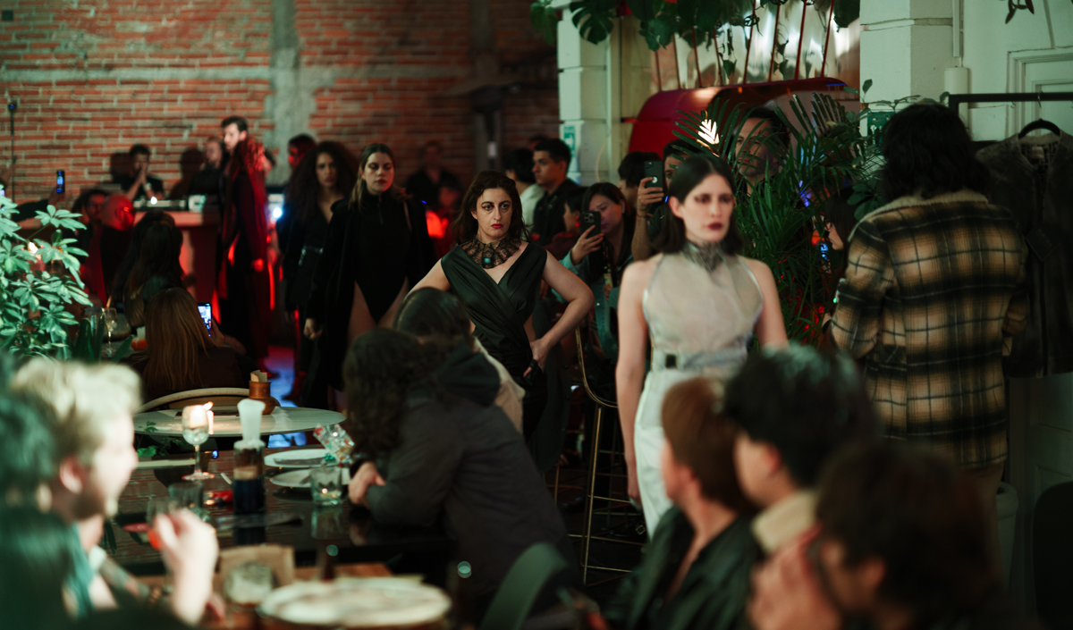 El pasado 19 de diciembre de 2025, el restaurante bar AJENO, ubicado en Álvaro Obregón 126, Roma Norte, Ciudad de México, dejó por unas horas su dinámica habitual para transformarse en algo distinto: un estudio vivo. Así se vivió Atelier Night, un encuentro íntimo que propuso una forma diferente de acercarse a la moda, al proceso creativo y al diálogo directo entre creadora y espectadores.