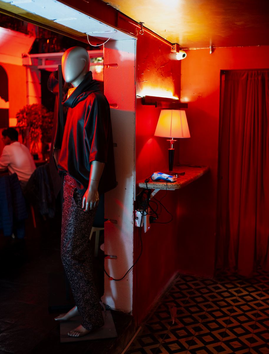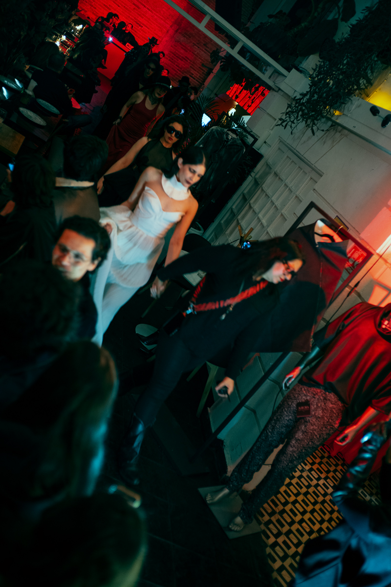 De 5:00 p.m. a 10:00 p.m., el pop up store se mantuvo activo dentro del speakeasy, mientras que de 7:00 p.m. a 10:00 p.m. se proyectaron fashion films y material behind the scenes en el mismo espacio, funcionando como una extensión visual y narrativa de la experiencia.